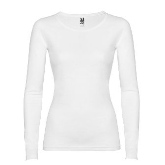 Elegant women's cotton T-shirt with long sleeves, featuring a gently fitted silhouette that accentuates feminine curves and adds a refined appearance. The design includes a wide neckline that brings a sense of freedom and style. The side seams are precisely constructed to provide stability and retain their shape during wear. Additionally, the neckline and shoulder areas are reinforced with special durable stitching to enhance the garment's resilience and extend its longevity, protecting it from stretching and deformation during regular use and washing.