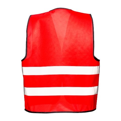 Promotional polyester vest with reflective tape and Velcro closure. It is not personal protective equipment.